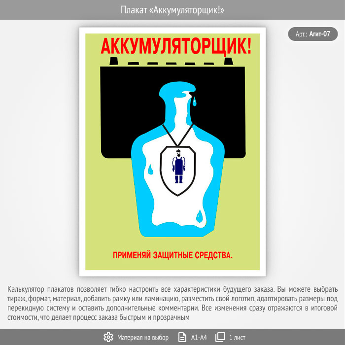 Плакат «Аккумуляторщик!» (Агит-07, 1 лист) в Ачинске купить