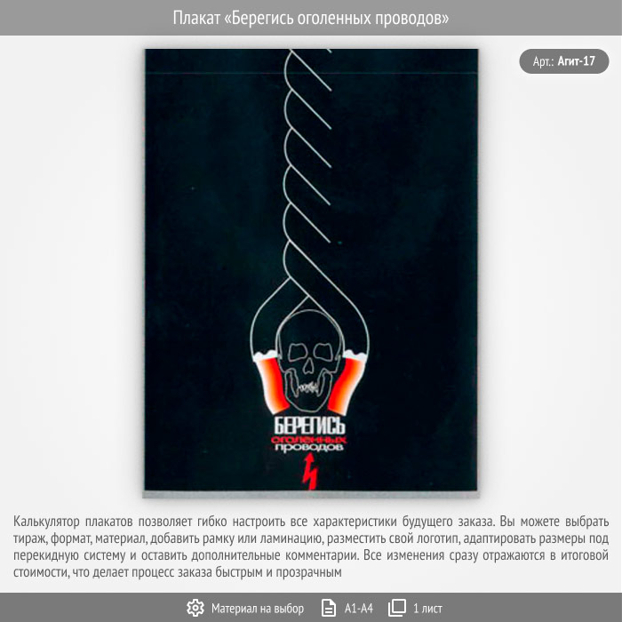 Плакат «Берегись оголенных проводов» (Агит-17, 1 лист) в Ачинске купить