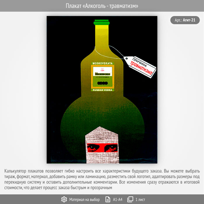 Плакат «Алкоголь - травматизм» (Агит-21, 1 лист) в Ачинске купить