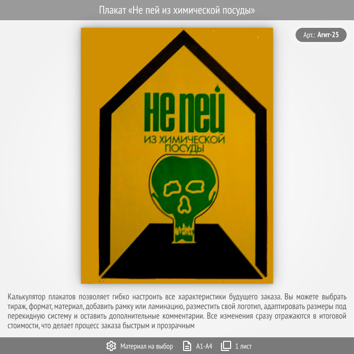 Плакат «Не пей из химической посуды» (Агит-25, 1 лист) в Ачинске купить