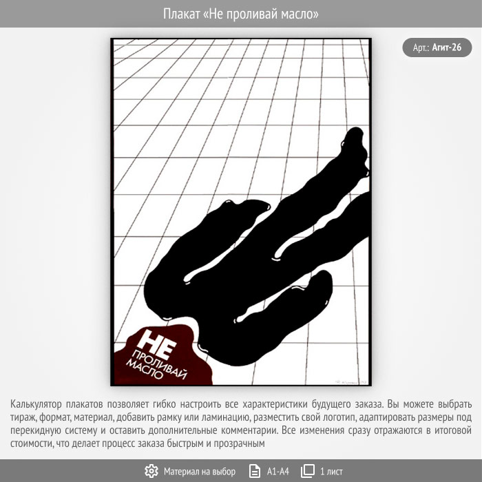 Плакат «Не проливай масло» (Агит-26, 1 лист) в Ачинске купить