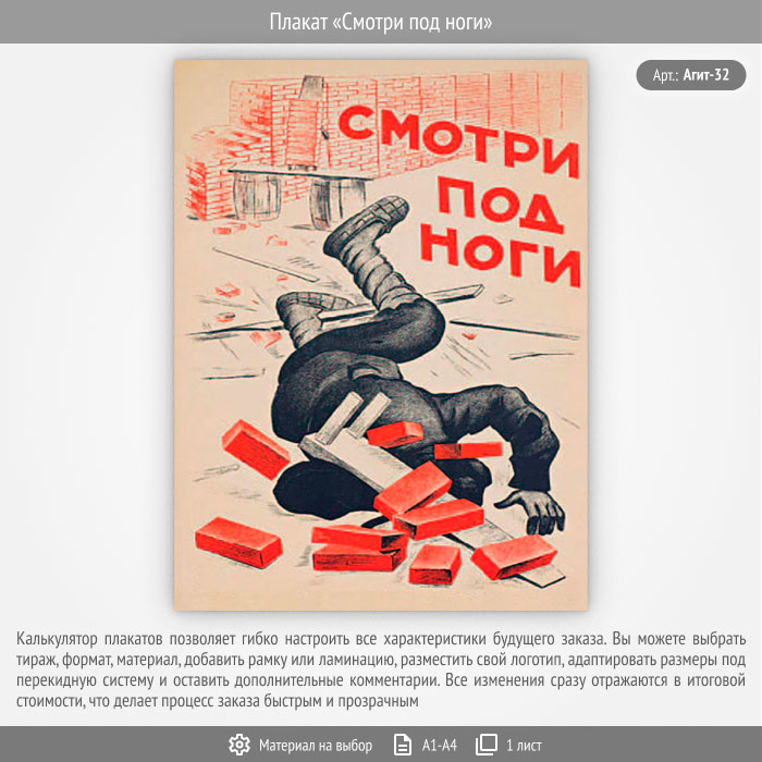 Плакат «Смотри под ноги» (Агит-32, 1 лист) в Ачинске купить