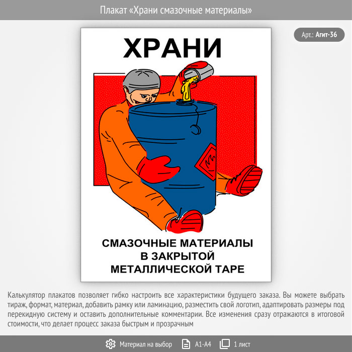 Плакат «Храни смазочные материалы» (Агит-36, 1 лист) в Ачинске купить