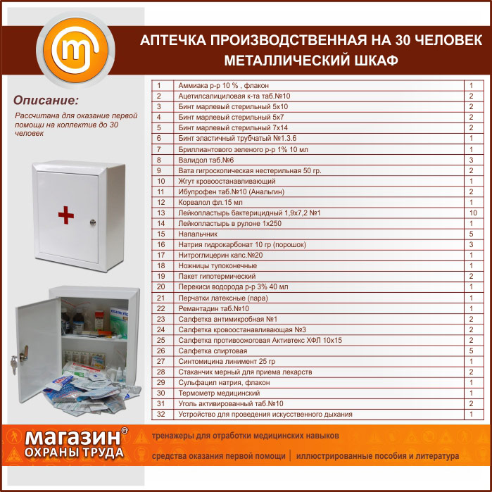 Аптечка ПРОИЗВОДСТВЕННАЯ (до 30 человек) - металлический шкаф