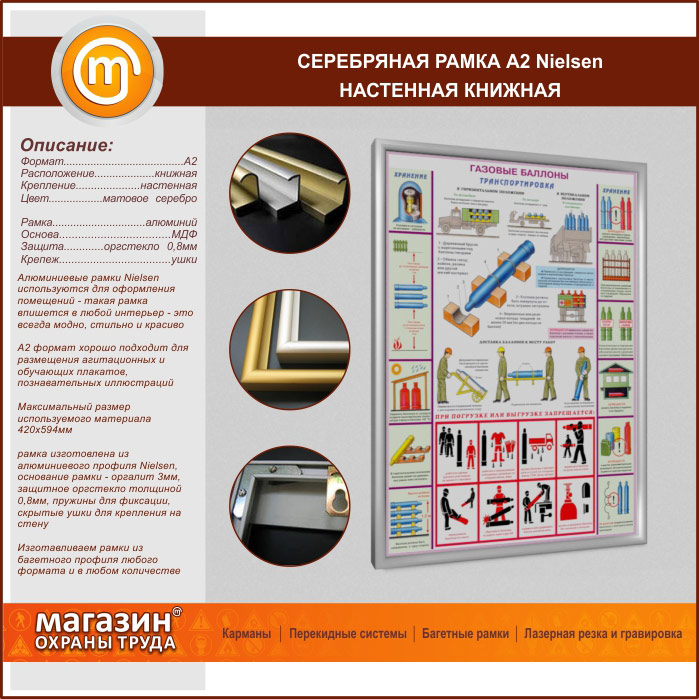 Багетная настенная рамка «Nielsen» А2 формата, книжная, матовое серебро в Ачинске купить