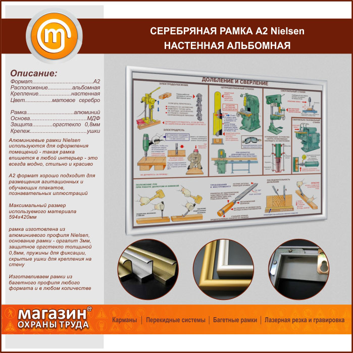 Багетная настенная рамка «Nielsen» А2 формата, альбомная, матовое серебро в Ачинске купить