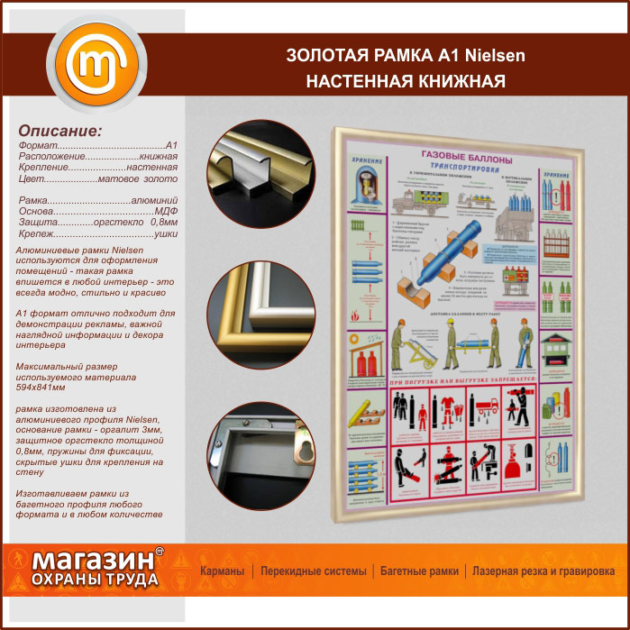 Багетная настенная рамка «Nielsen» А1 формата, книжная, матовое золото в Ачинске купить