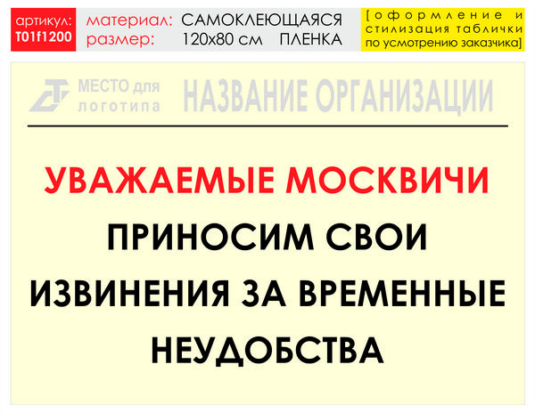 Баннер «Извинения», T01 (самоклеящаяся плёнка, 120х90 см) в Ачинске купить