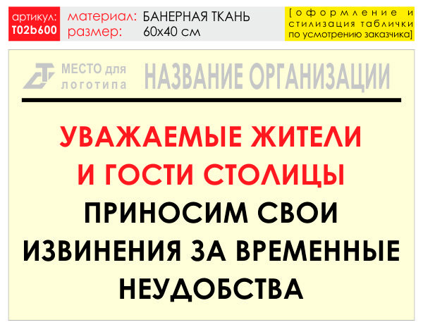Баннер «Извинения», T02 (баннерная ткань, 60х40 см) в Ачинске купить