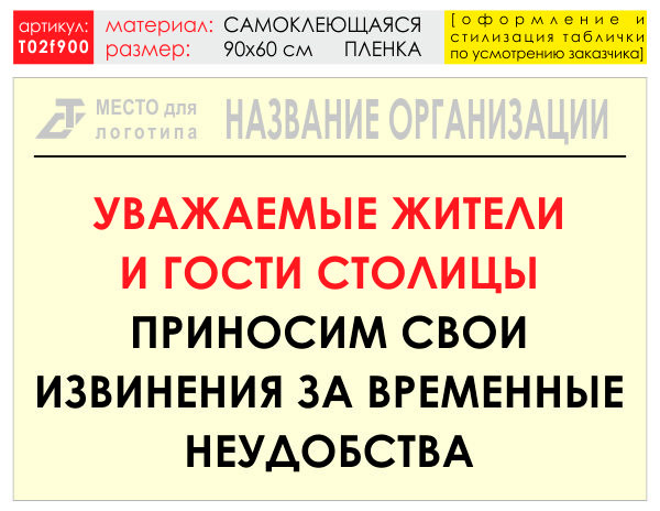 Баннер «Извинения», T02 (самоклеящаяся плёнка, 90х60 см) в Ачинске купить