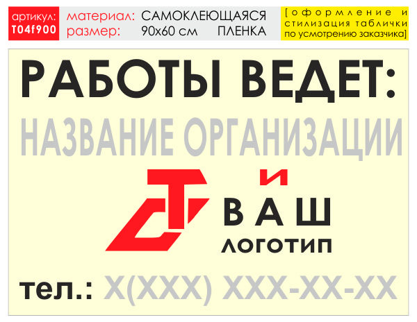 Баннер «Работы ведет», T04 (самоклеящаяся плёнка, 90х60 см) в Ачинске купить