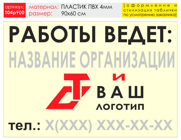 Баннер «Работы ведет», T04 (пластик 4 мм, 90х60 см) в Ачинске купить