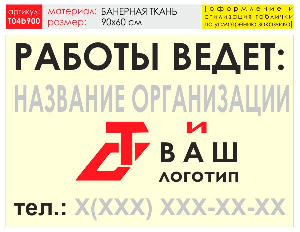 Баннер «Работы ведет», T04 (баннерная ткань, 90х60 см) в Ачинске купить