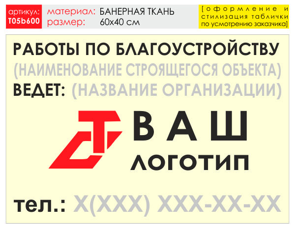 Баннер «Работы по благоустройству», T05 (баннерная ткань, 60х40 см) в Ачинске купить
