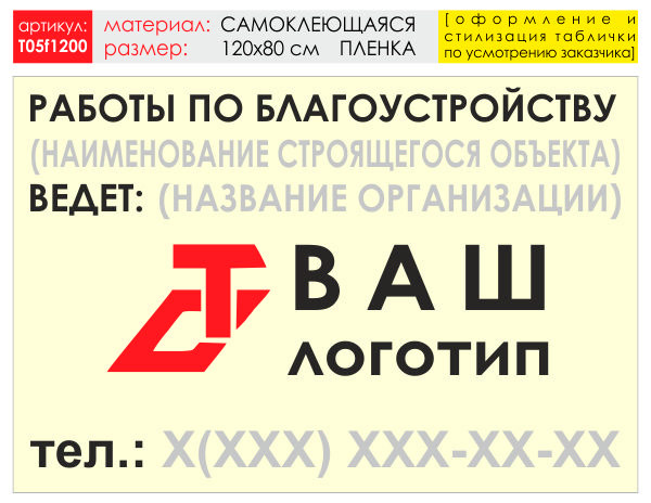 Баннер «Работы по благоустройству», T05 (самоклеящаяся плёнка, 120х90 см) в Ачинске купить