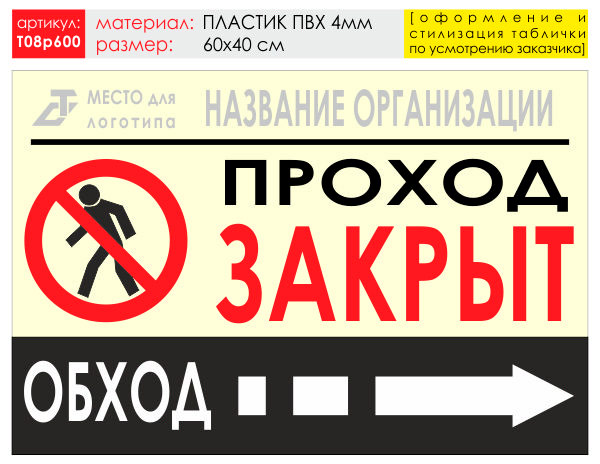 Баннер «Обход справа», T08 (пластик 4 мм, 60х40 см) в Ачинске купить