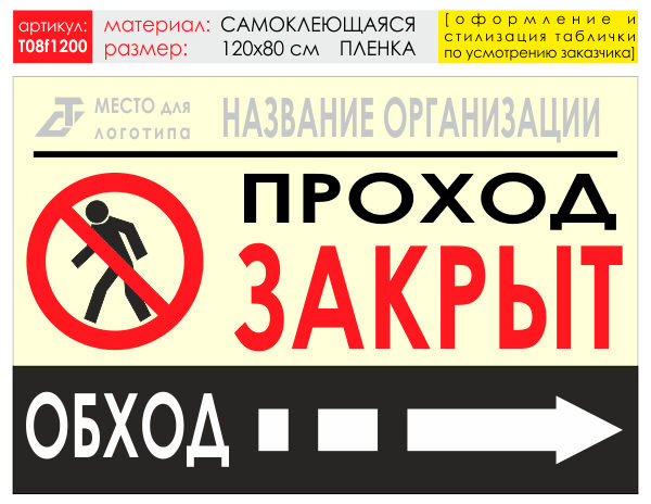 Баннер «Обход справа», T08 (самоклеящаяся плёнка, 120х90 см) в Ачинске купить