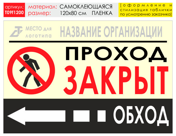 Баннер «Обход слева», T09 (самоклеящаяся плёнка, 120х90 см) в Ачинске купить
