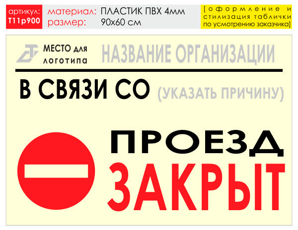Баннер «Проезд закрыт», T11 (пластик 4 мм, 90х60 см) в Ачинске купить