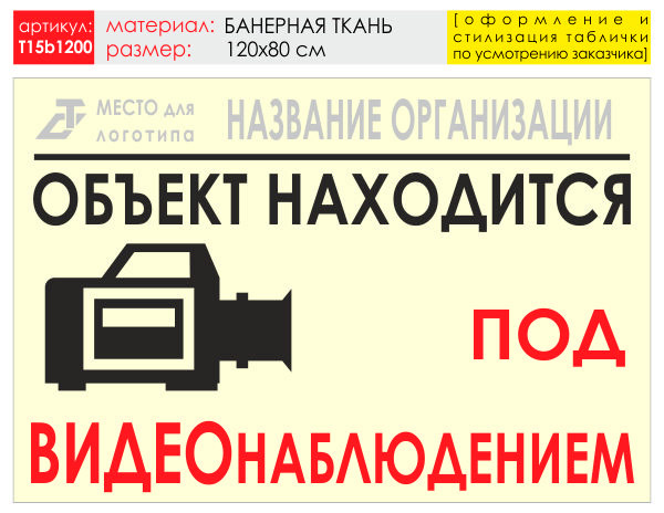 Баннер «Видеонаблюдение», T15 (баннерная ткань, 120х90 см) в Ачинске купить