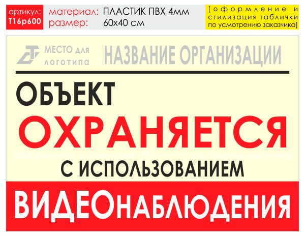 Баннер «Объект охраняется», T16 (пластик 4 мм, 60х40 см) в Ачинске купить