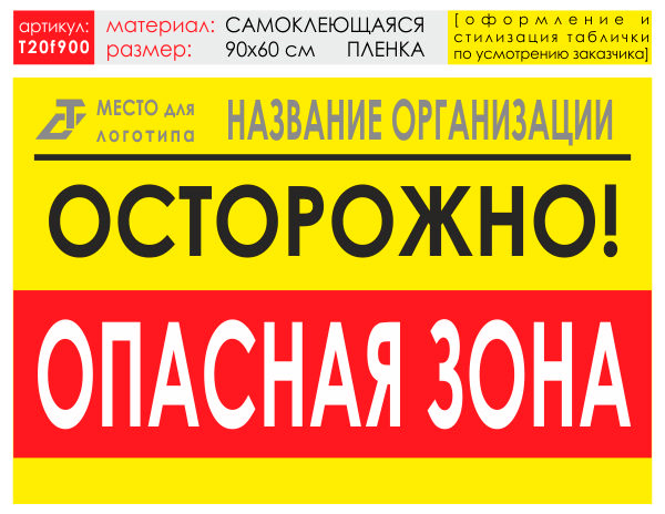Баннер «Опасная зона», T20 (самоклеящаяся плёнка, 90х60 см) в Ачинске купить