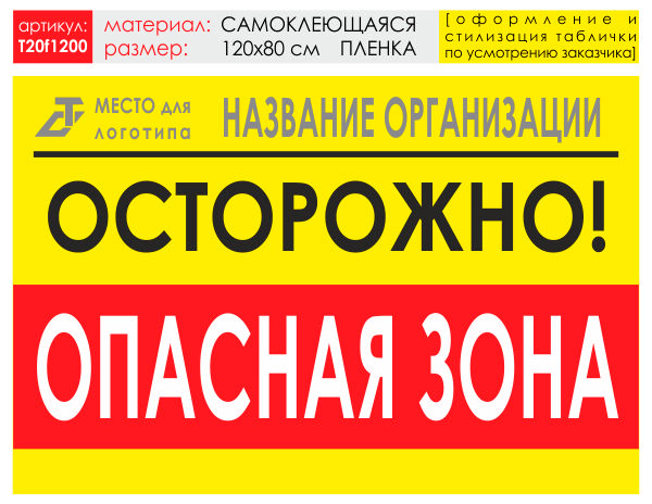 Баннер «Опасная зона», T20 (самоклеящаяся плёнка, 120х90 см) в Ачинске купить