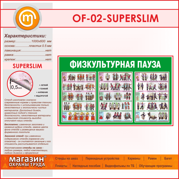 Стенд «Физкультурная пауза» (OF-02-SUPERSLIM) в Ачинске купить