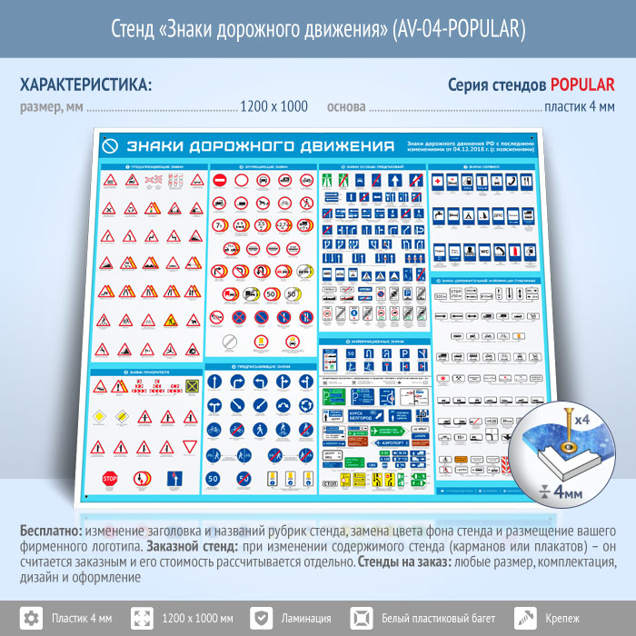 Стенд «Знаки дорожного движения» (AV-04-POPULAR) в Ачинске купить