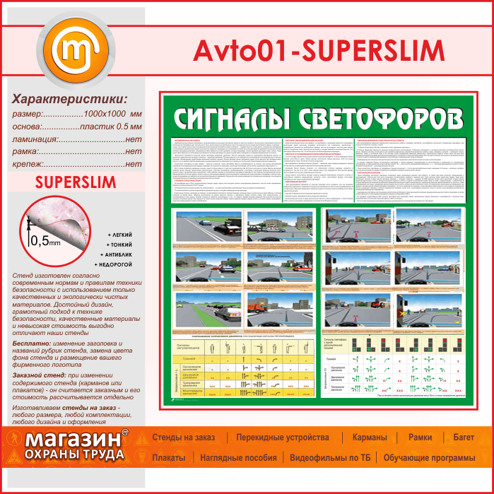Стенд «Сигналы светофоров» (AV-01-SUPERSLIM) в Ачинске купить