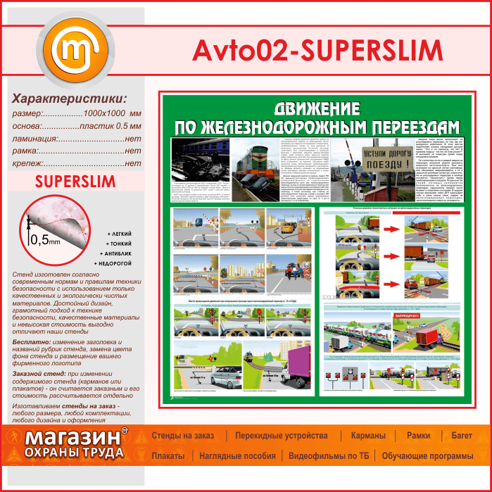 Стенд «Движение по железнодорожным переездам» (AV-02-SUPERSLIM) в Ачинске купить