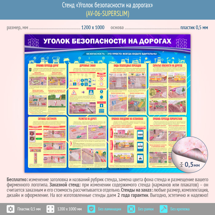 Стенд «Уголок безопасности на дорогах» (AV-06-SUPERSLIM) в Ачинске купить