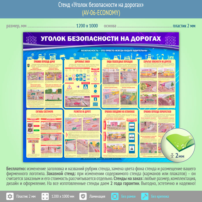 Стенд «Уголок безопасности на дорогах» (AV-06-ECONOMY) в Ачинске купить