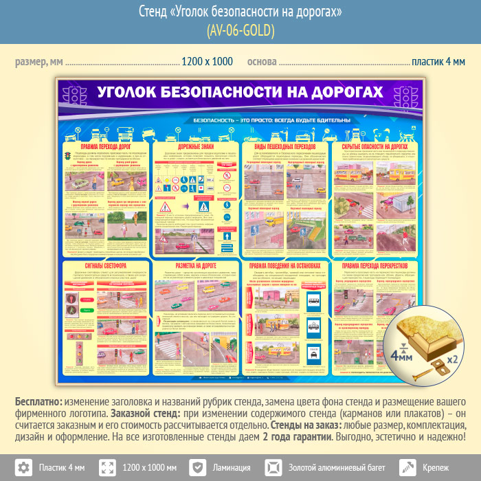 Стенд «Уголок безопасности на дорогах» (AV-06-GOLD) в Ачинске купить