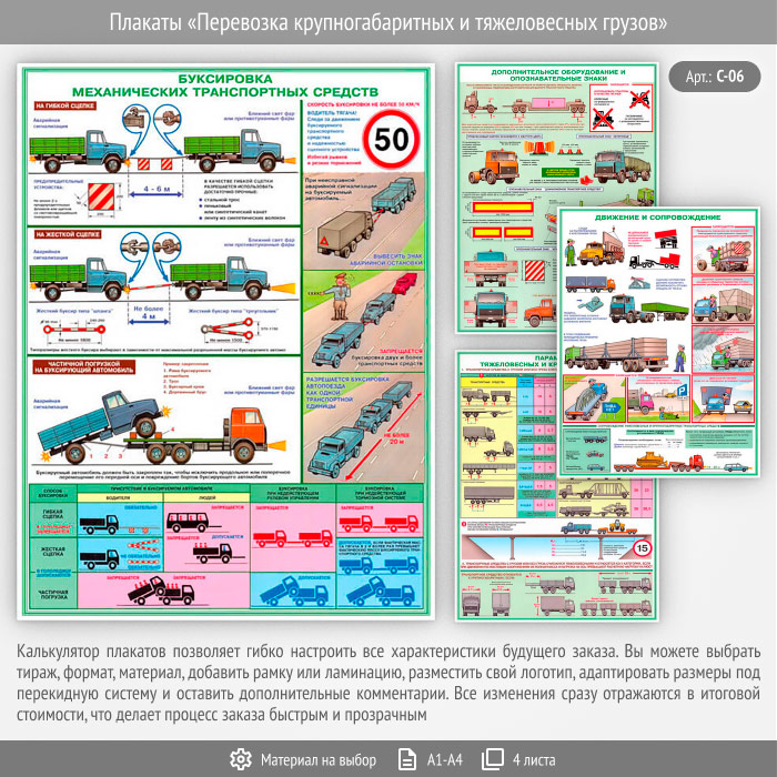 Плакаты «Перевозка крупногабаритных и тяжеловесных грузов» (С-06, 4 листа) в Ачинске купить