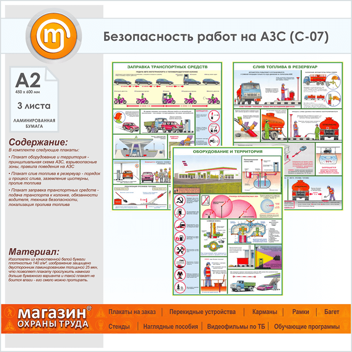 Плакаты «Безопасность работ на АЗС» (С-07, ламинированная бумага, А2, 3 листа) в Ачинске купить