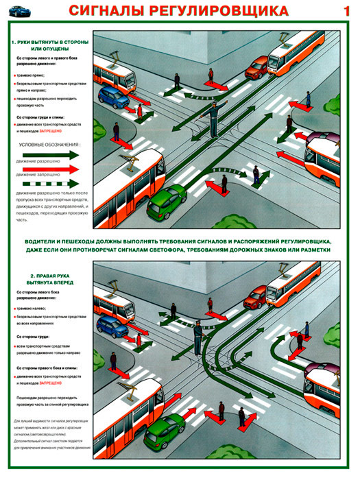 Плакаты «Сигналы регулировщика» (С-09, ламинированная бумага, А2, 2 листа) в Ачинске купить