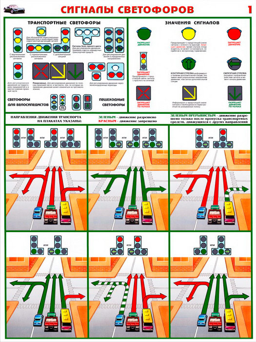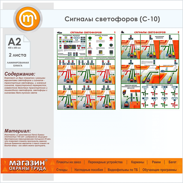 Плакаты «Сигналы светофоров» (С-10, ламинированная бумага, А2, 2 листа) в Ачинске купить