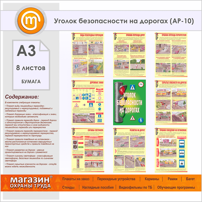 Плакаты «Уголок безопасности на дорогах» (АР-10, бумага, А3, 8 листов) в Ачинске купить