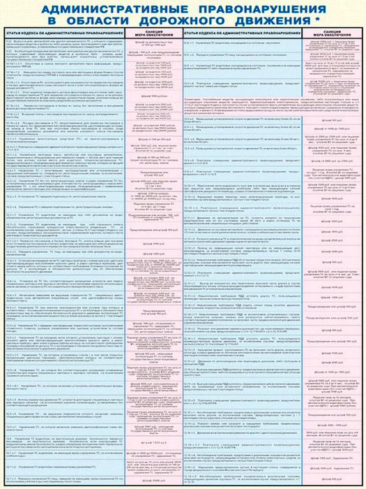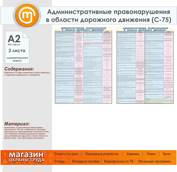Плакаты «Административные правонарушения в области дорожного движения» (С-75, ламинированная бумага, А2, 2 листа) в Ачинске купить