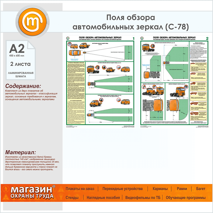 Плакаты «Поля обзора автомобильных зеркал» (С-78, ламинированная бумага, А2, 2 листа) в Ачинске купить