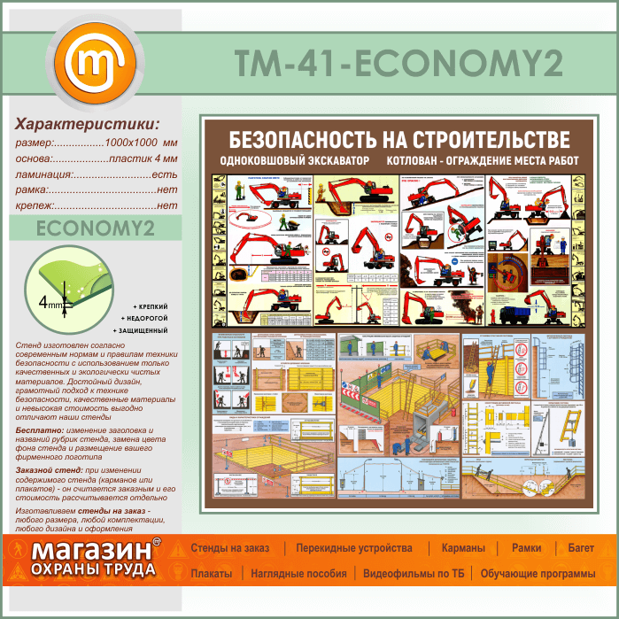 Стенд «Безопасность земляных работ. Экскаватор, котлован» (TM-41-ECONOMY2) в Ачинске купить