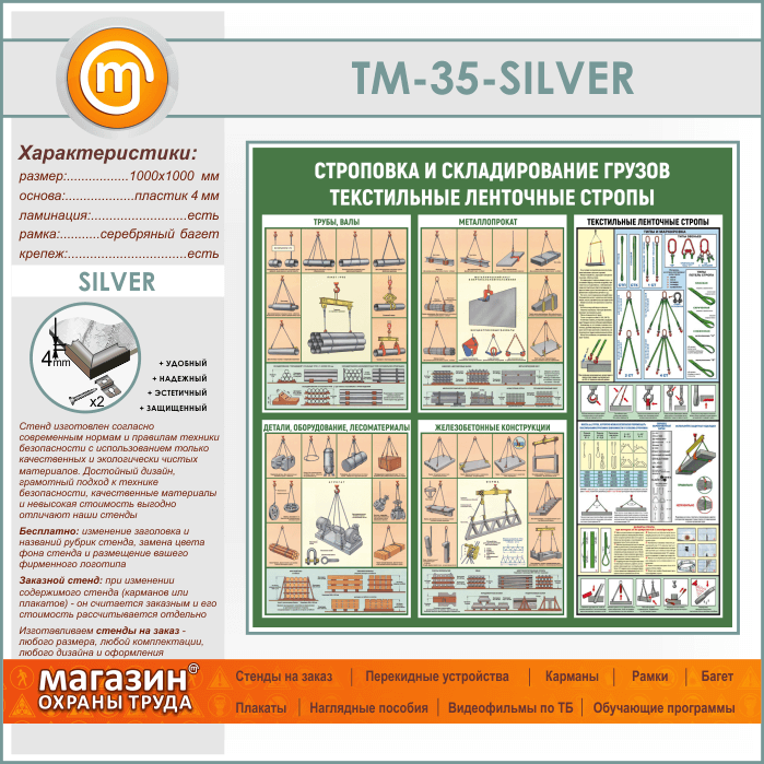 Стенд «Строповка и складирование грузов. Текстильные ленточные стропы» (TM-35-SILVER) в Ачинске купить