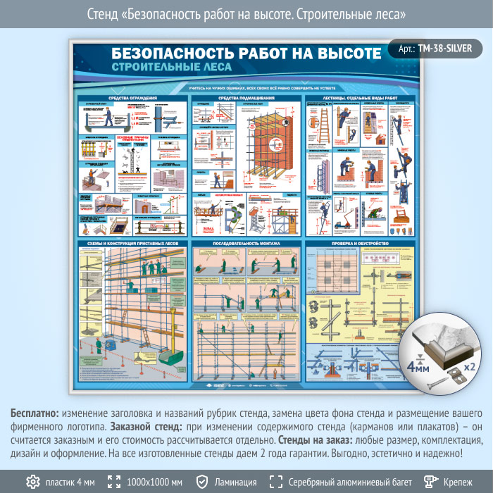Стенд «Безопасность работ на высоте. Строительные леса» (TM-38-SILVER) в Ачинске купить