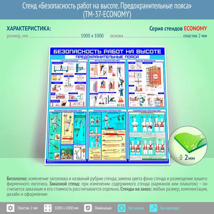 Стенд «Безопасность работ на высоте. Предохранительные пояса» (TM-37-ECONOMY) в Ачинске купить