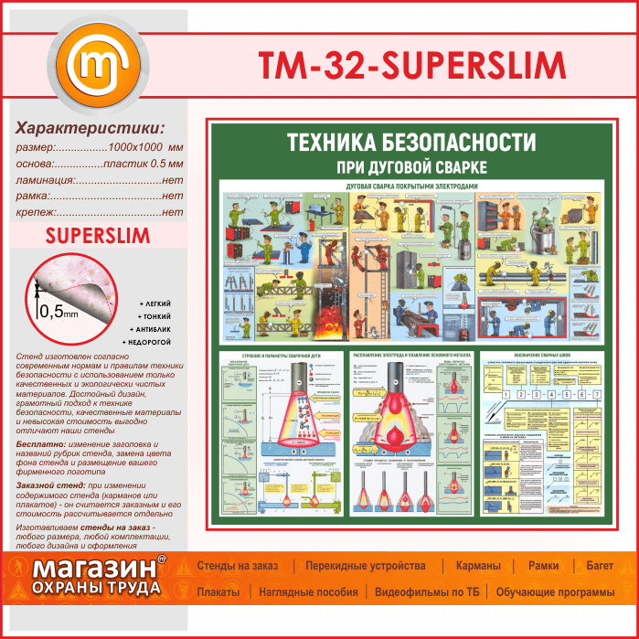 Стенд «Техника безопасности при дуговой сварке» (TM-32-SUPERSLIM) в Ачинске купить
