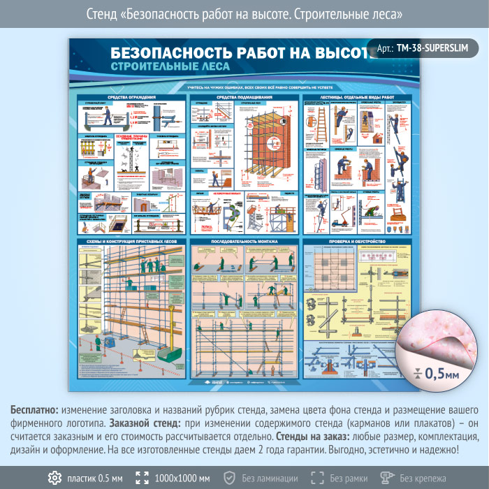 Стенд «Безопасность работ на высоте. Строительные леса» (TM-38-SUPERSLIM) в Ачинске купить