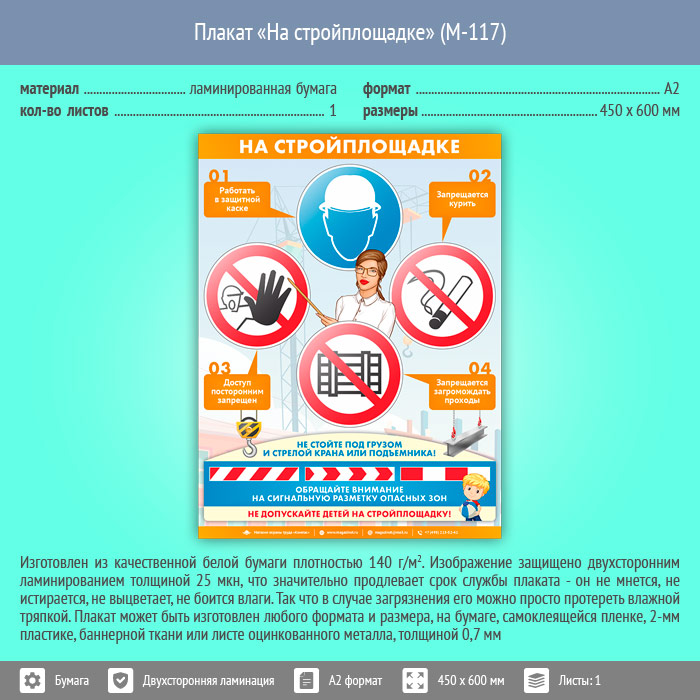 Плакат «На стройплощадке» (М-117, ламинированная бумага, А2, 1 лист) в Ачинске купить
