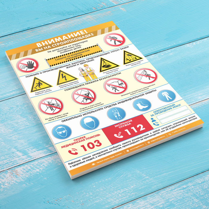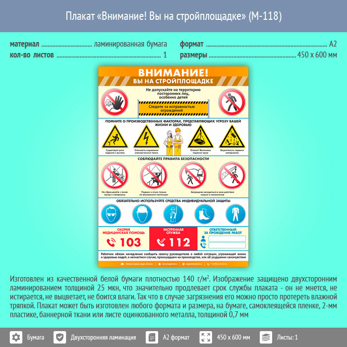 Плакат «Внимание! Вы на стройплощадке» (М-118, ламинированная бумага, А2, 1 лист) в Ачинске купить