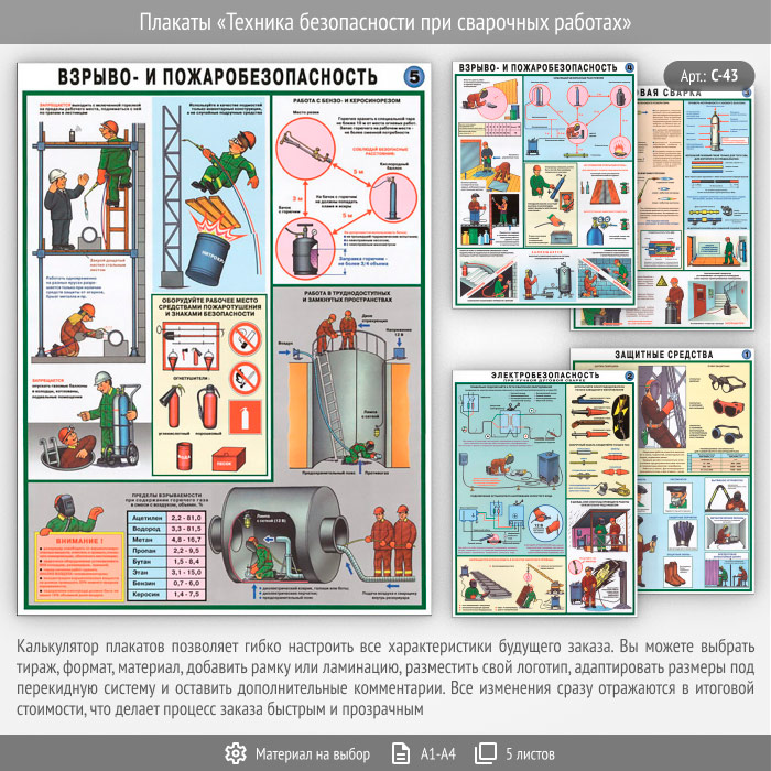 Плакаты «Техника безопасности при сварочных работах» (С-43, 5 листов) в Ачинске купить